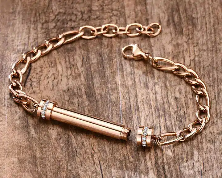 When it comes to men’s ashes bracelets, the material you choose is very important. There are a variety of options including sterling silver, gold plated, stainless steel, and titanium. Each one has its own strengths and weaknesses in terms of durability and visual appeal. It’s best to do your research so that you can make an informed decision on which one is best for you.