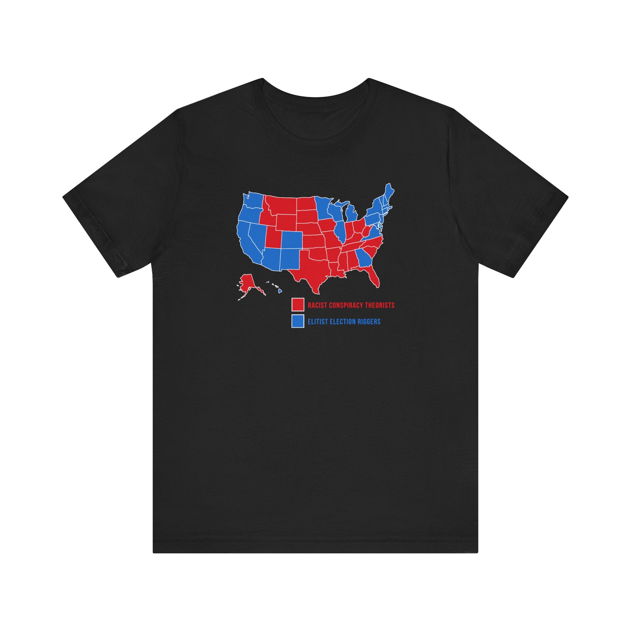 Looking for a trendy and fashionable T-shirt? Look no further Elitist Election Riggers (Blue States) - Racist Conspiracy Theorists (Red States)! Our collection of t-shirts is made with 100% cotton, ensuring you stay comfortable and cool all day long.