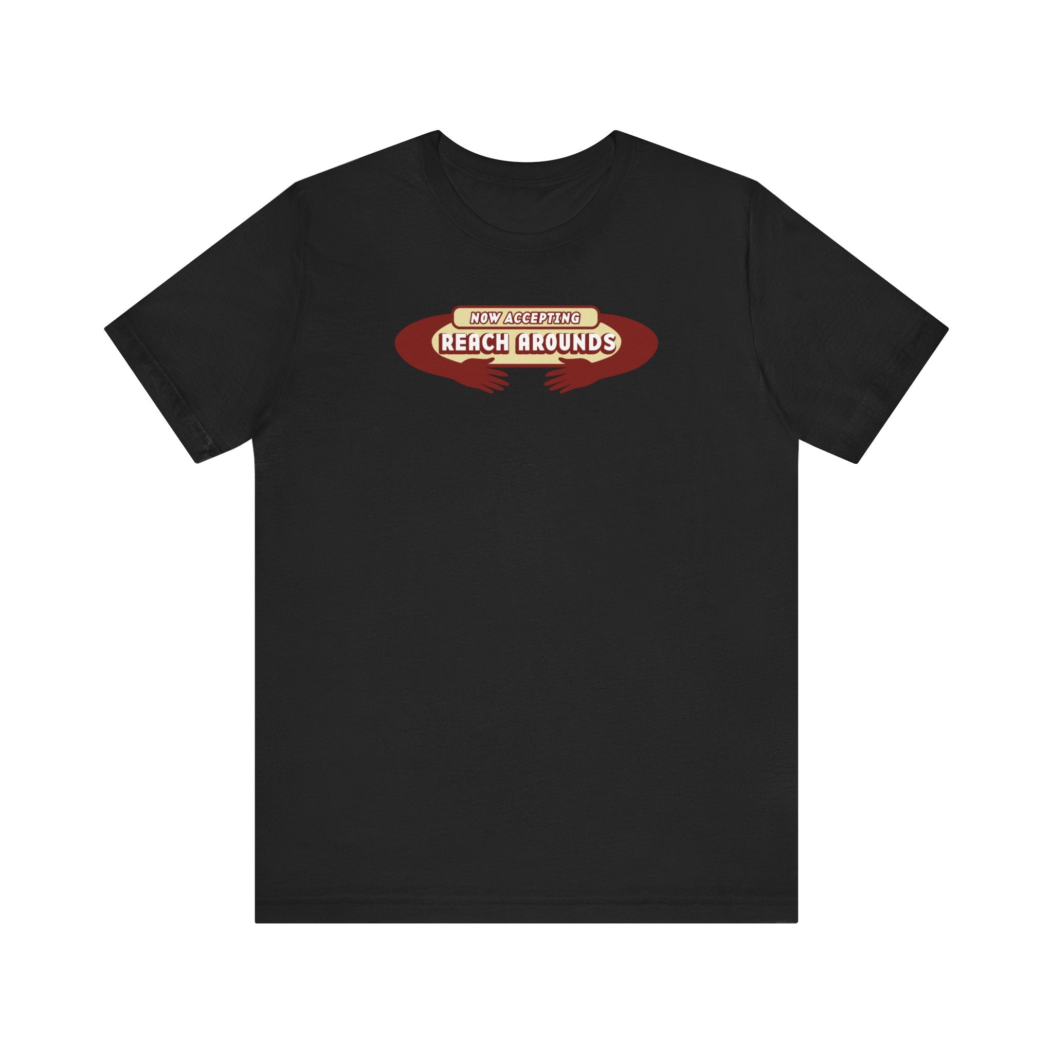 Looking for a trendy and fashionable T-shirt? Look no further Now Accepting Reach Arounds! Our collection of t-shirts is made with 100% cotton, ensuring you stay comfortable and cool all day long.