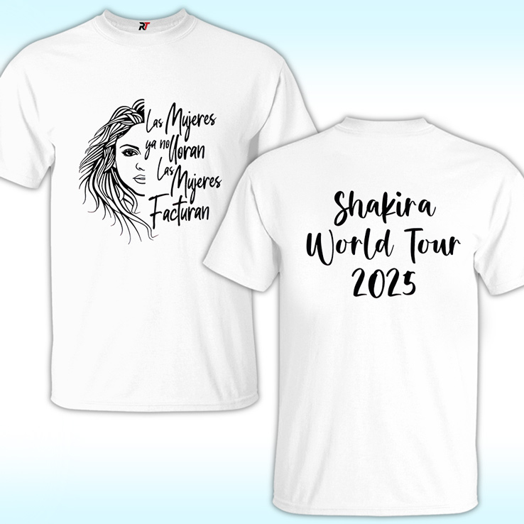 Looking for a trendy and fashionable T-shirt? Look no further Shakira Las Mujeres Ya No Lloran Las Mujeres Facturan Shirt, World Tour 2025! Our collection of t-shirts is made with 100% cotton, ensuring you stay comfortable and cool all day long.